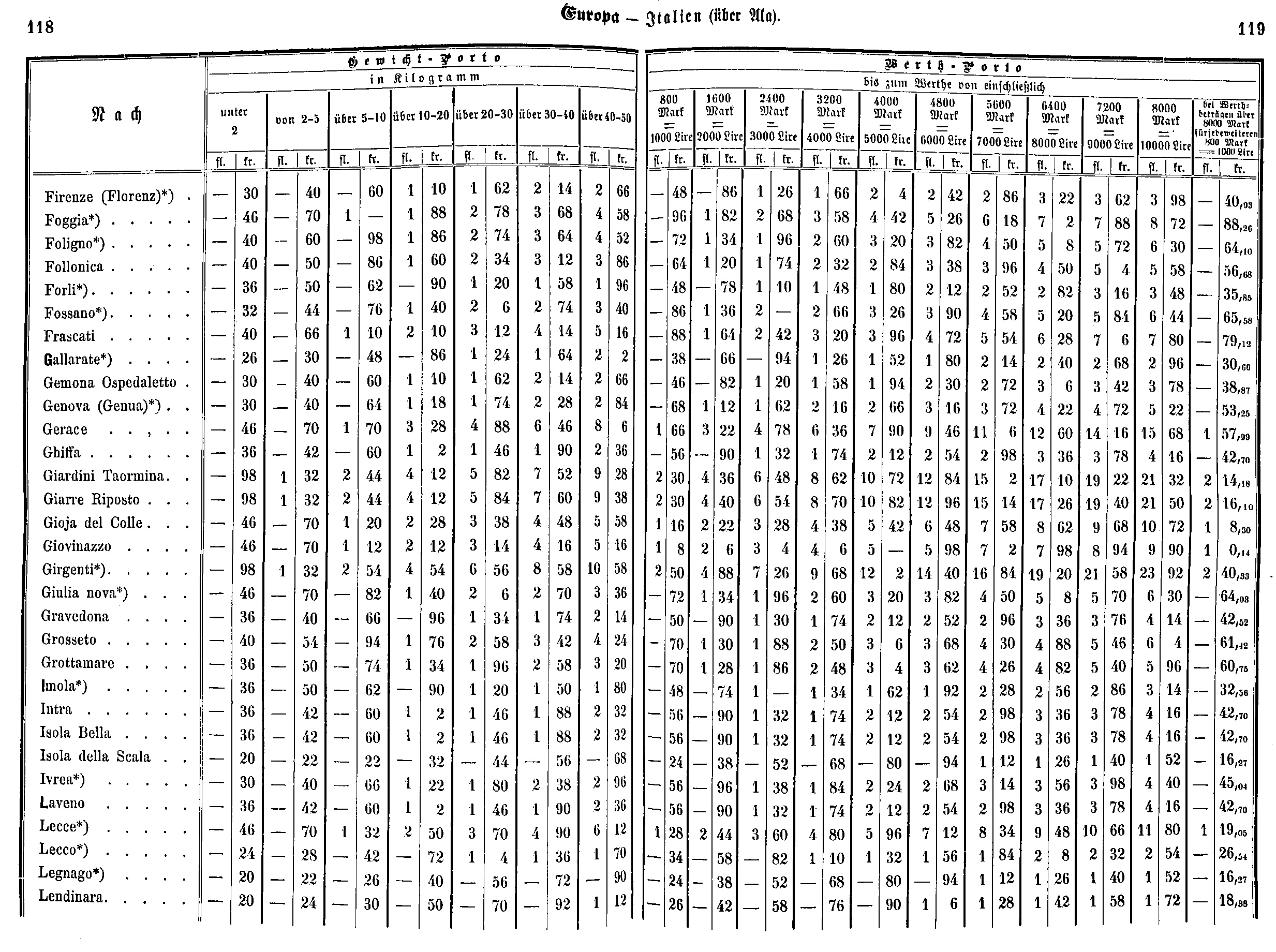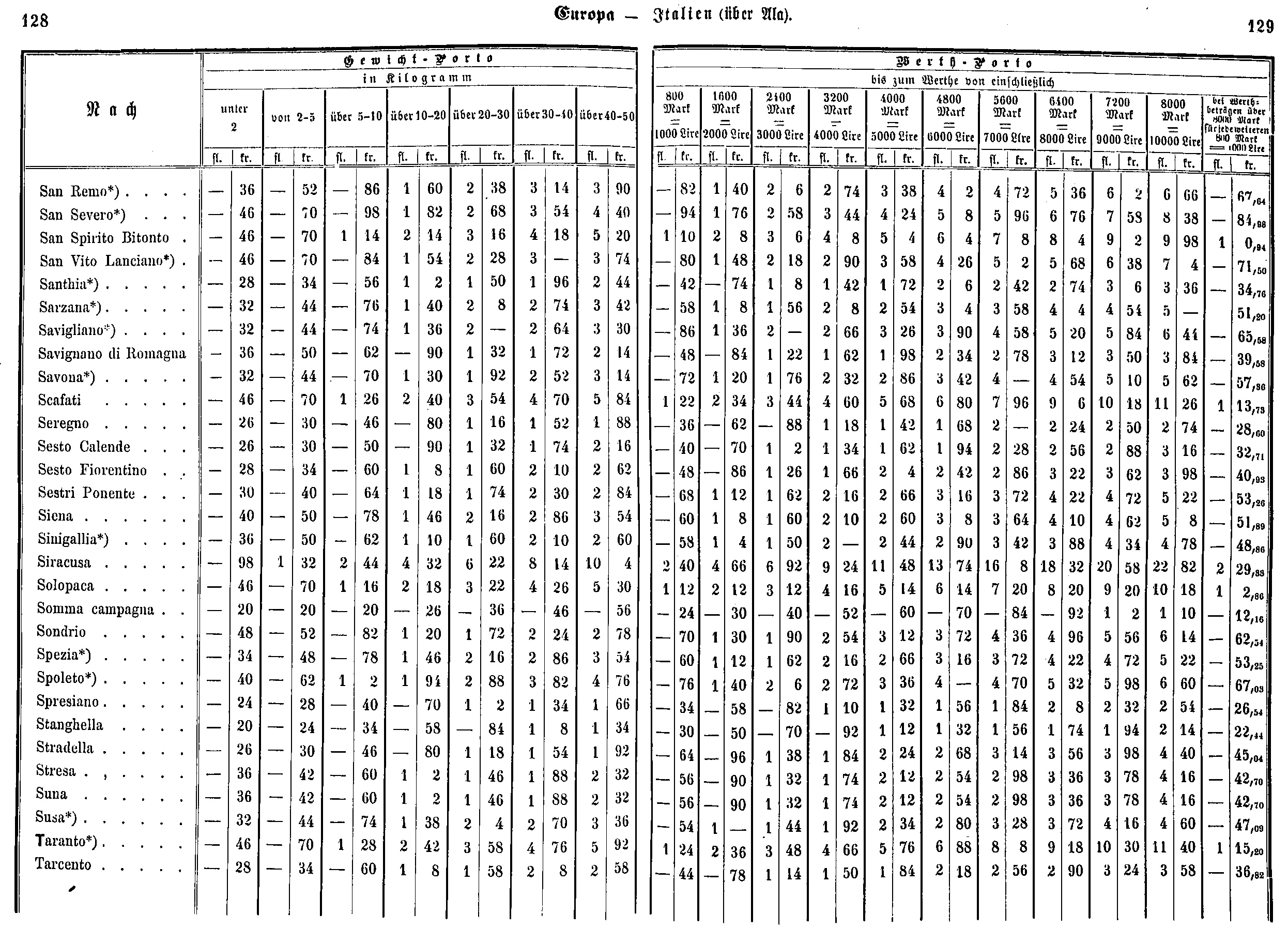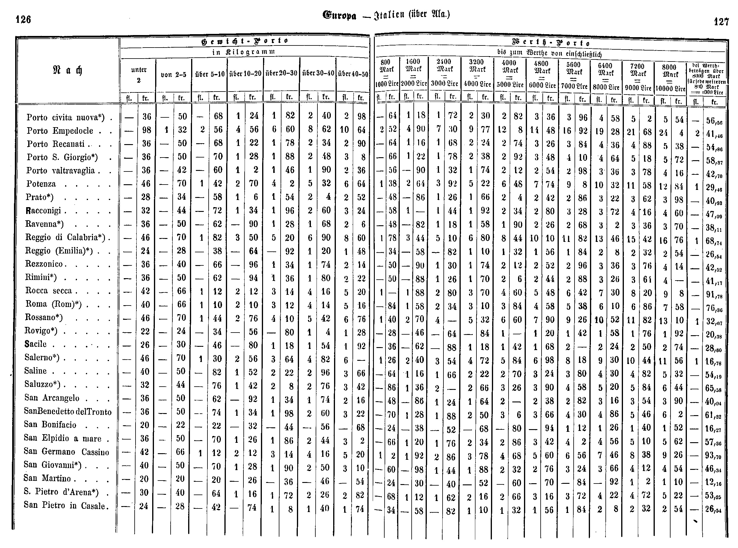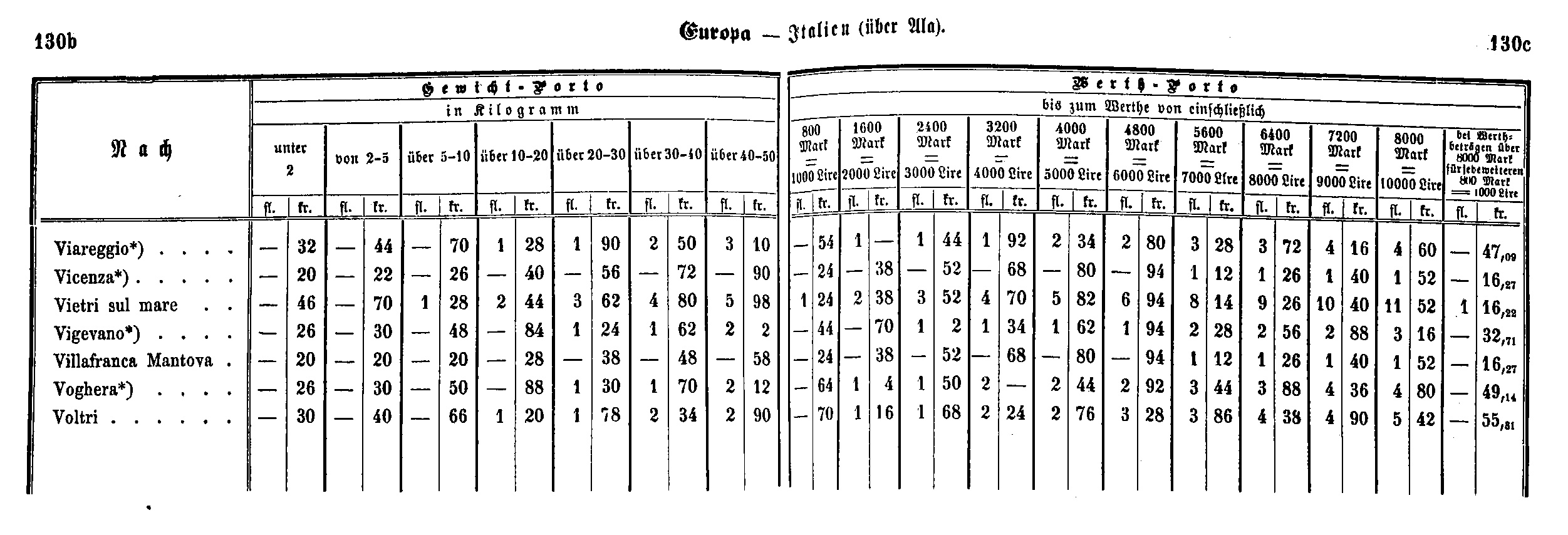 Hier sind (anders als in der Beschreibung) die Gewichtstarife und die Wert-Tarife