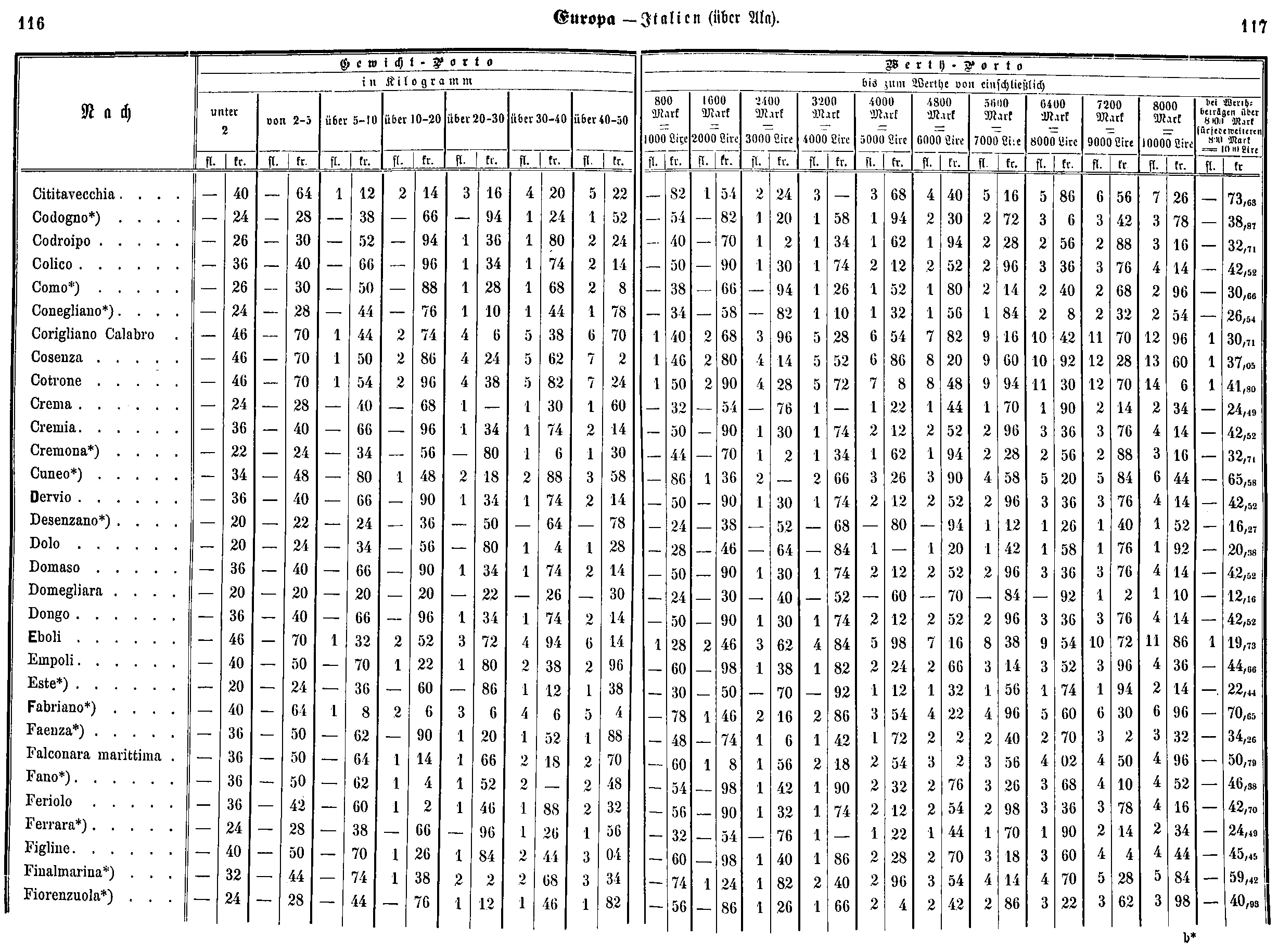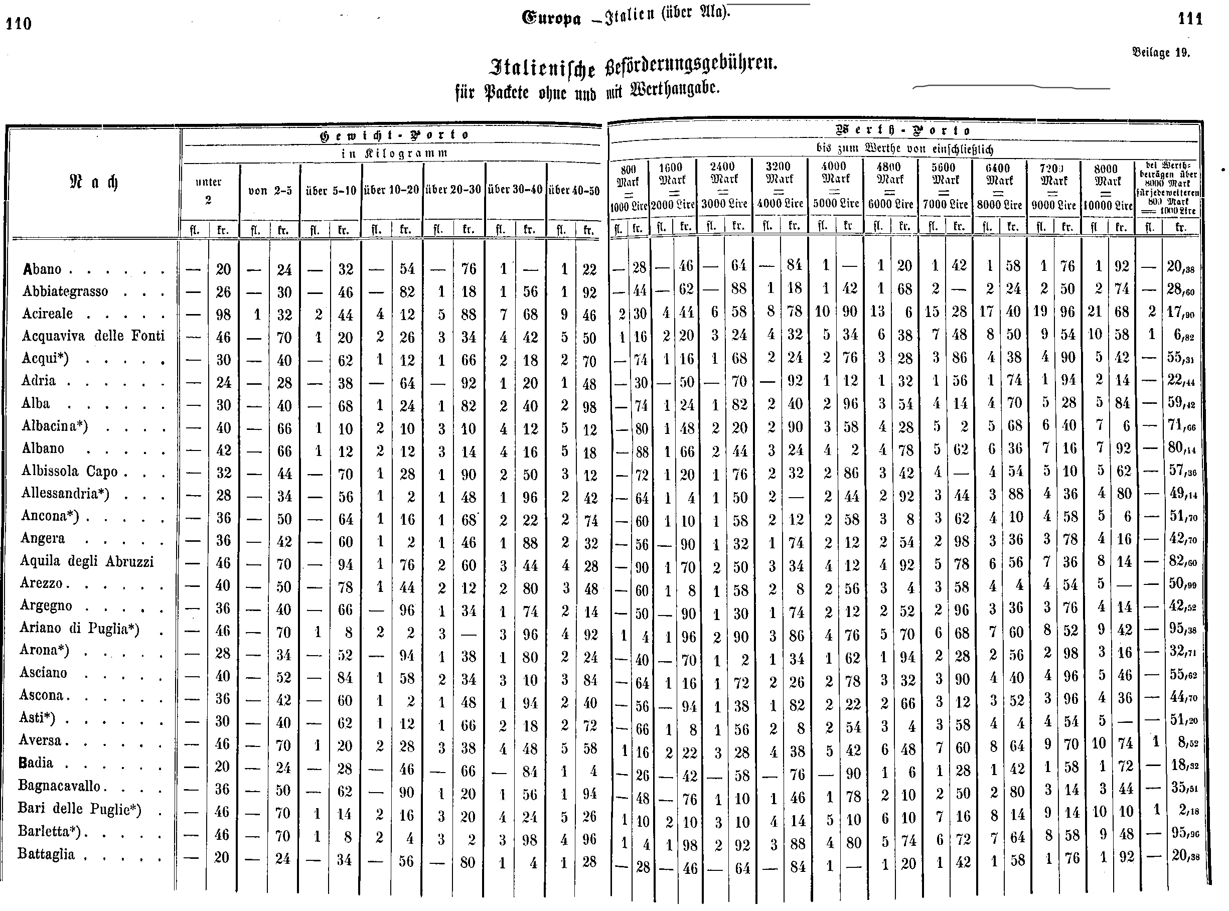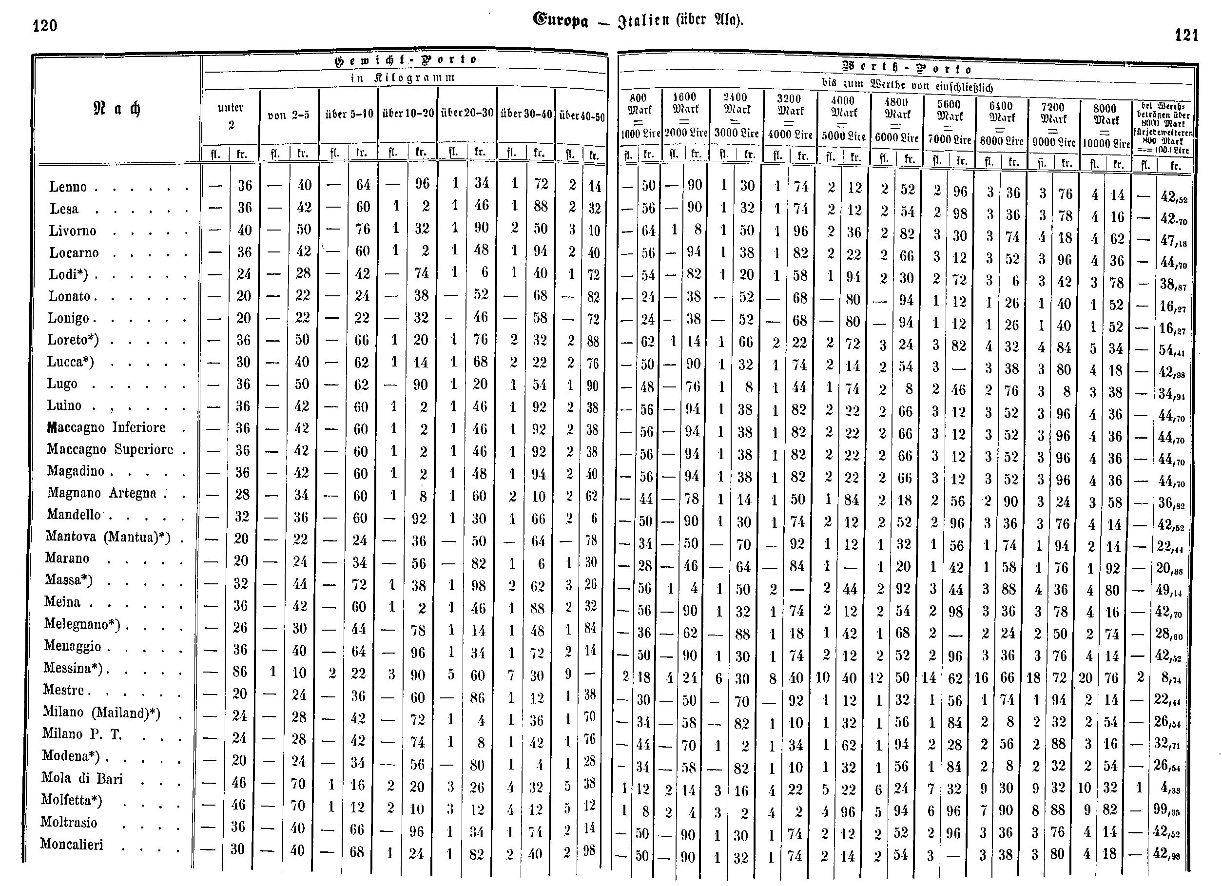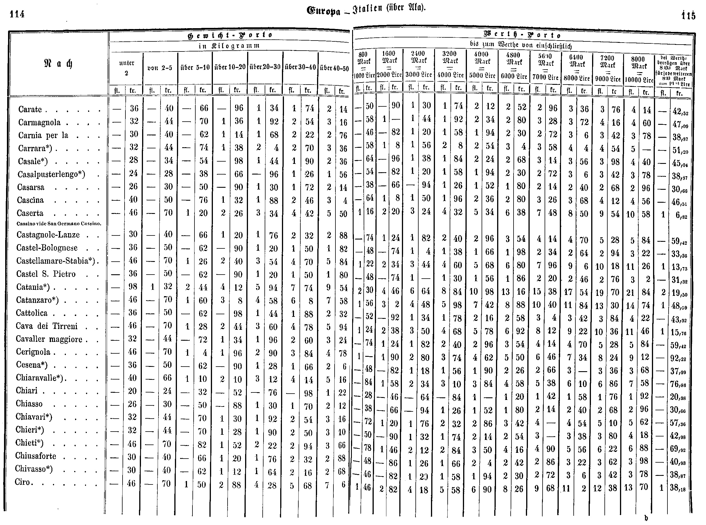 Hier sind (anders als in der Beschreibung) die Gewichtstarife und die Wert-Tarife