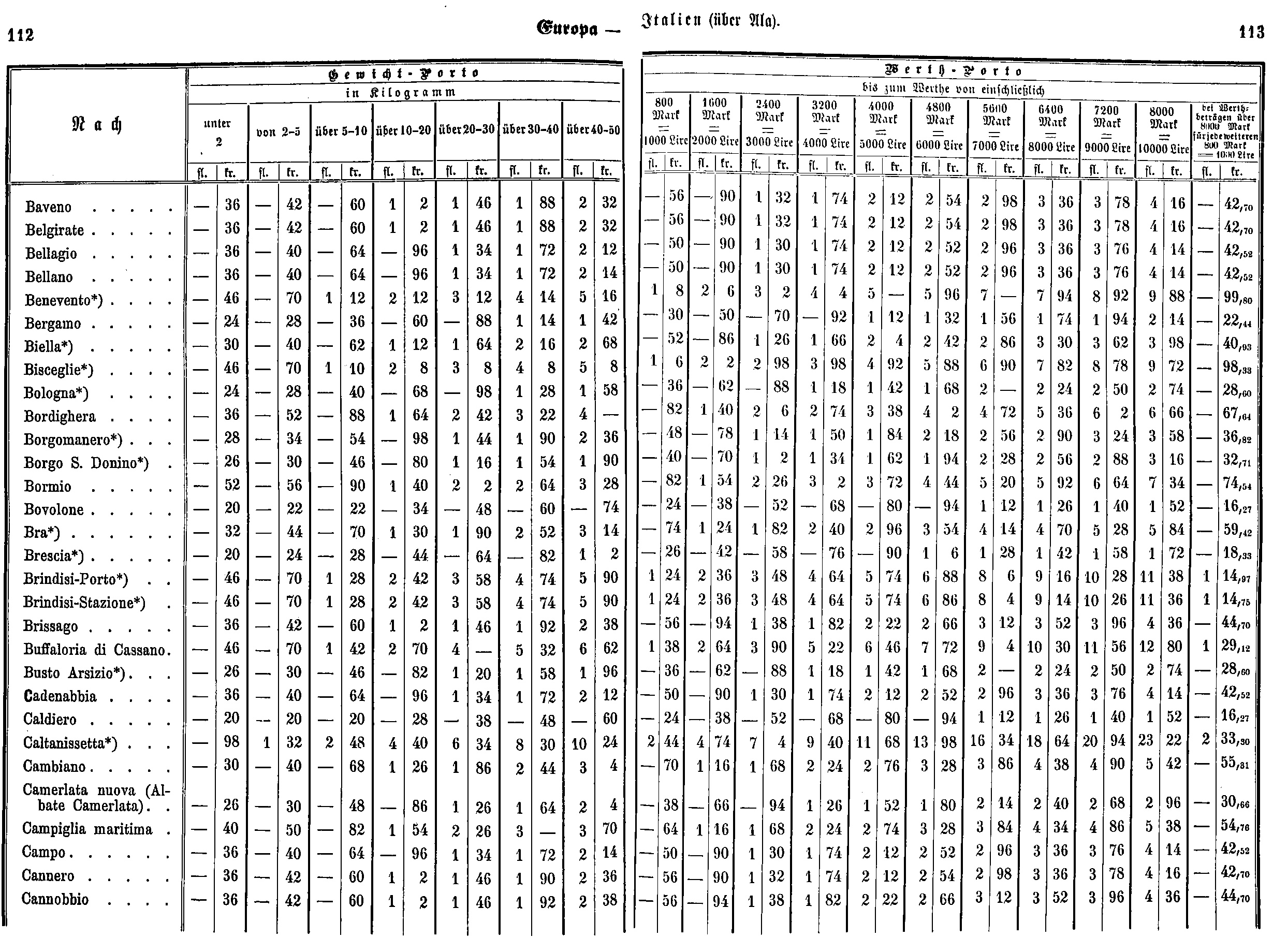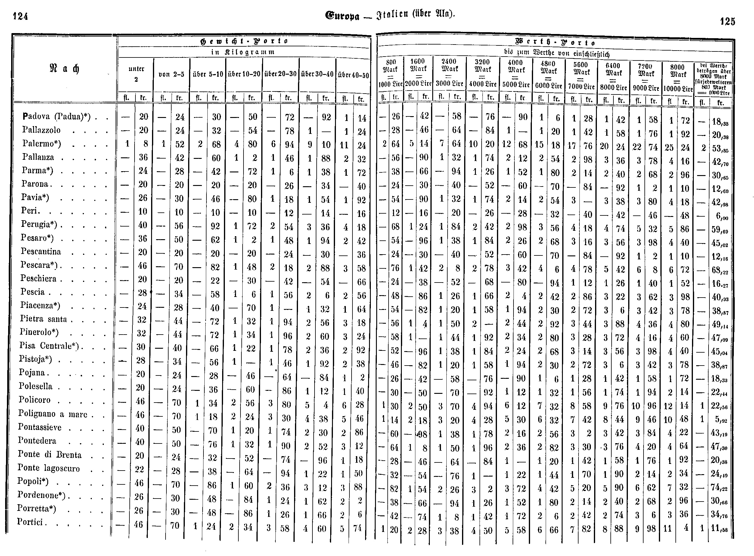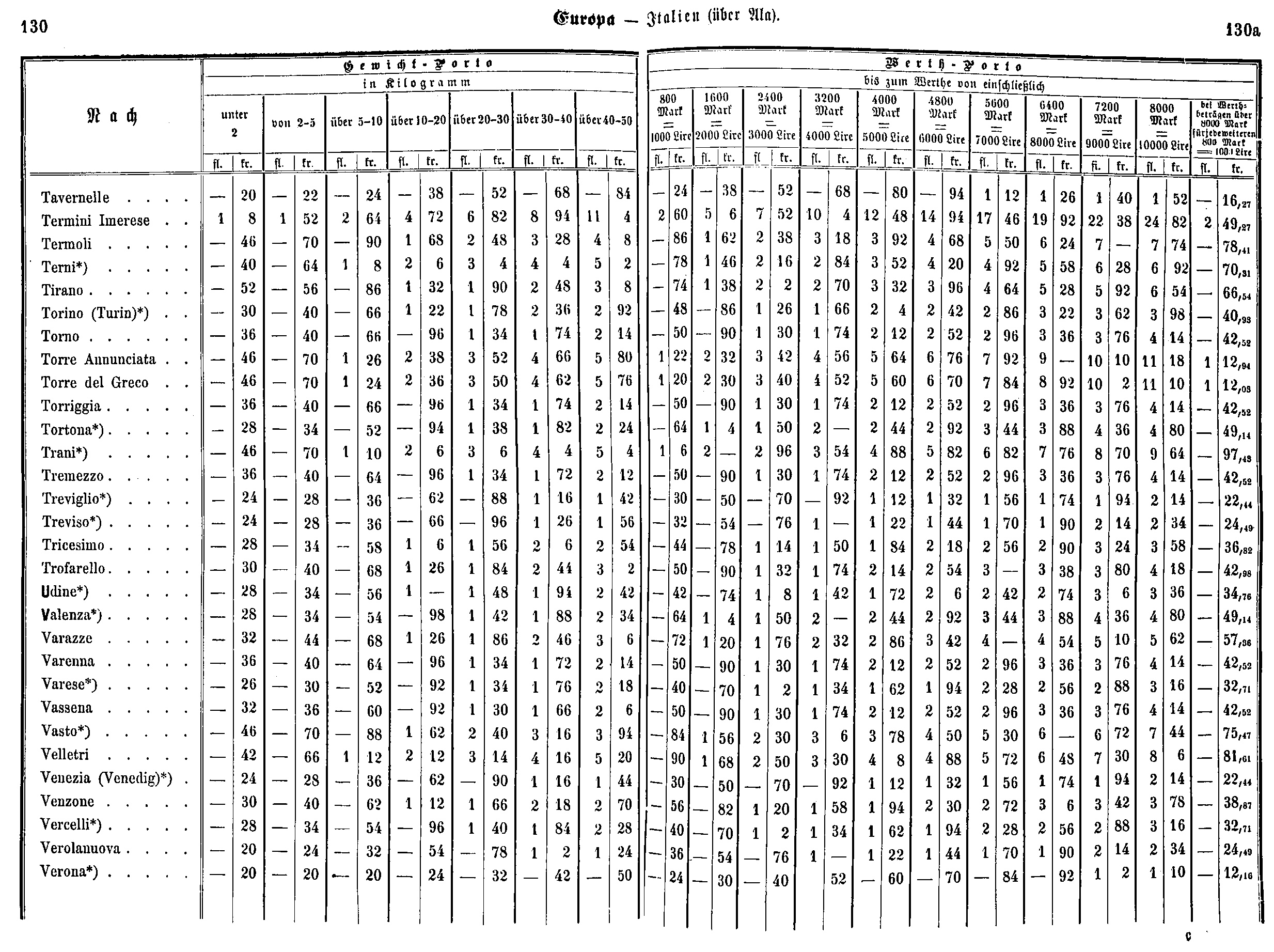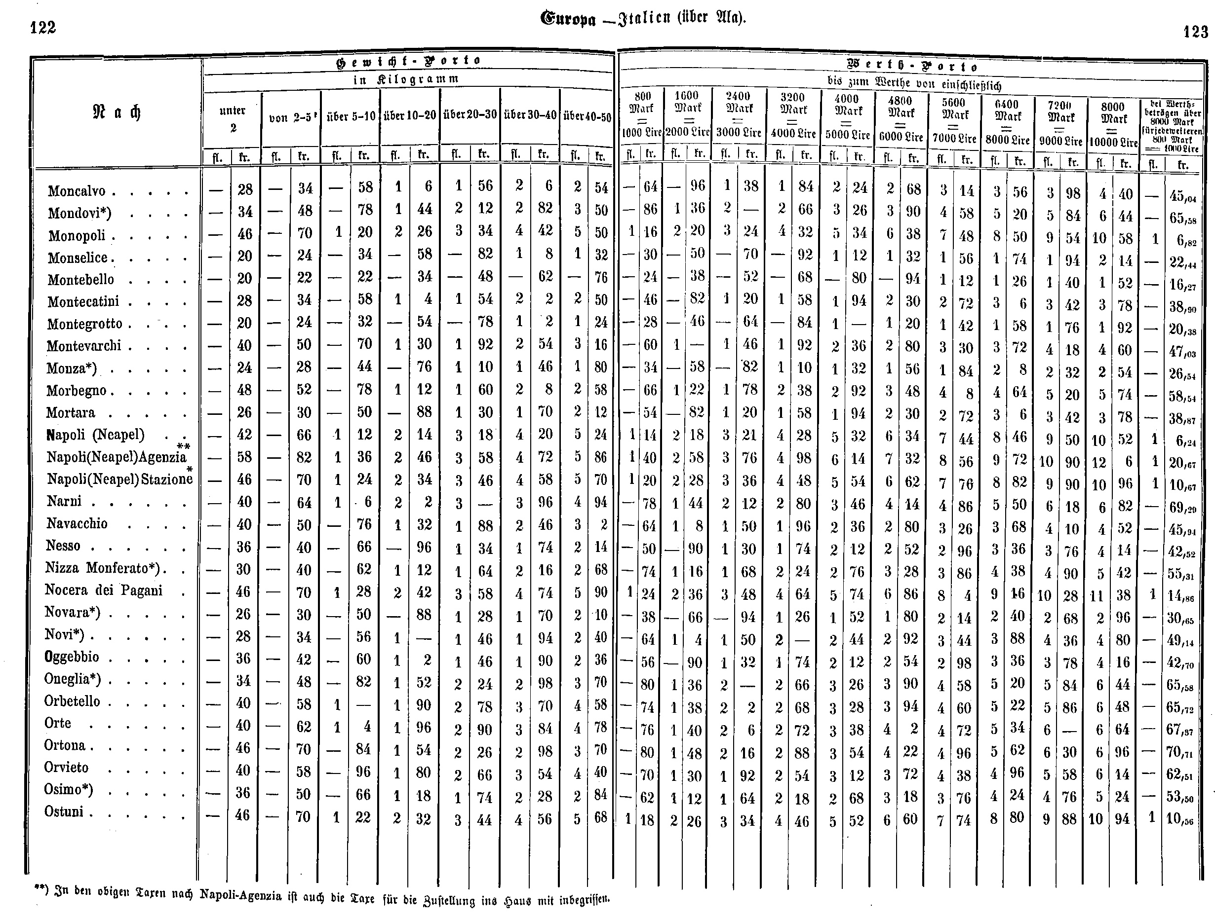 Hier sind (anders als in der Beschreibung) die Gewichtstarife und die Wert-Tarife