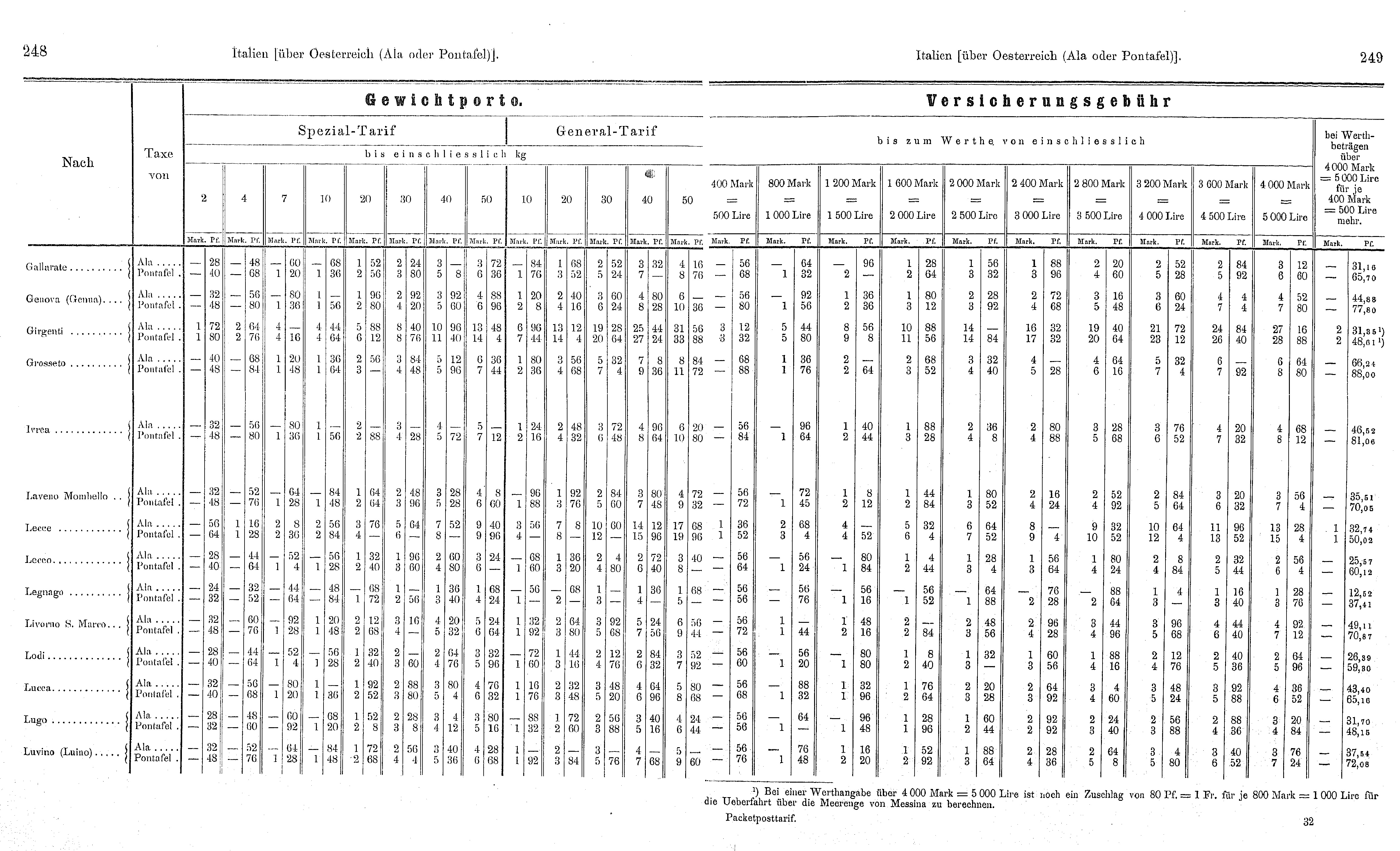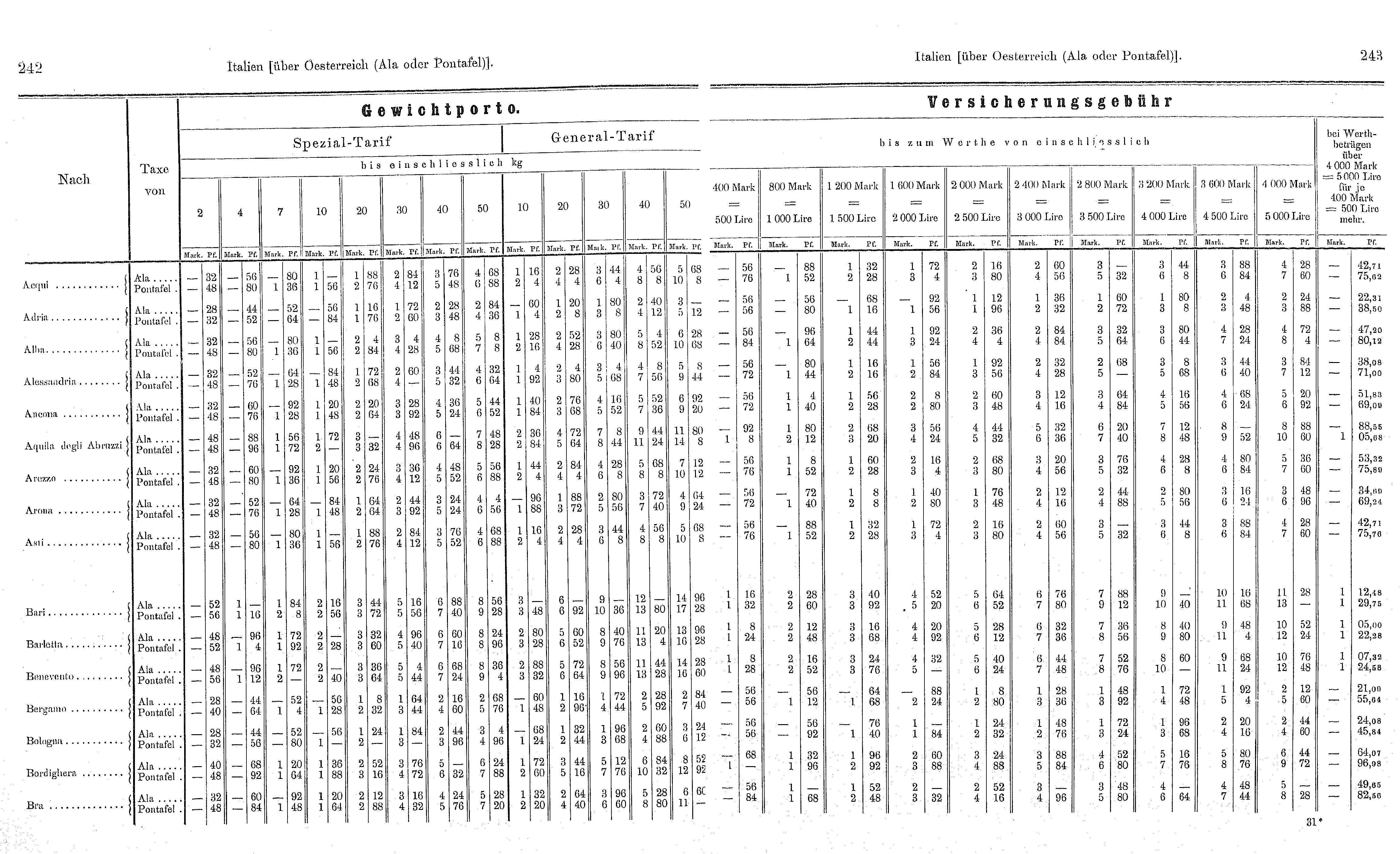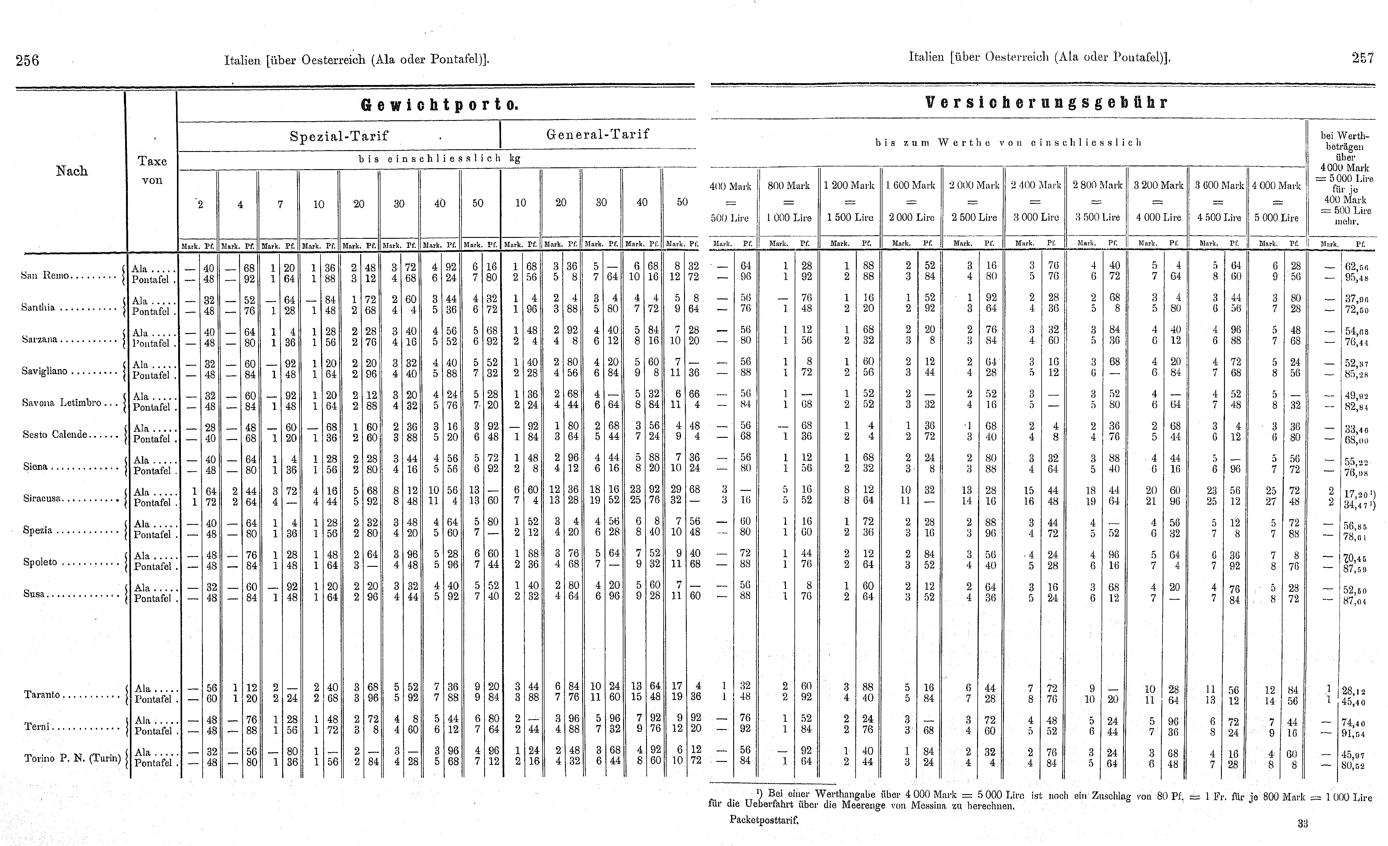 I.G.3. Gewichtsporto und Versicherungsgebühren 01.12.1895 – 04.05.1897